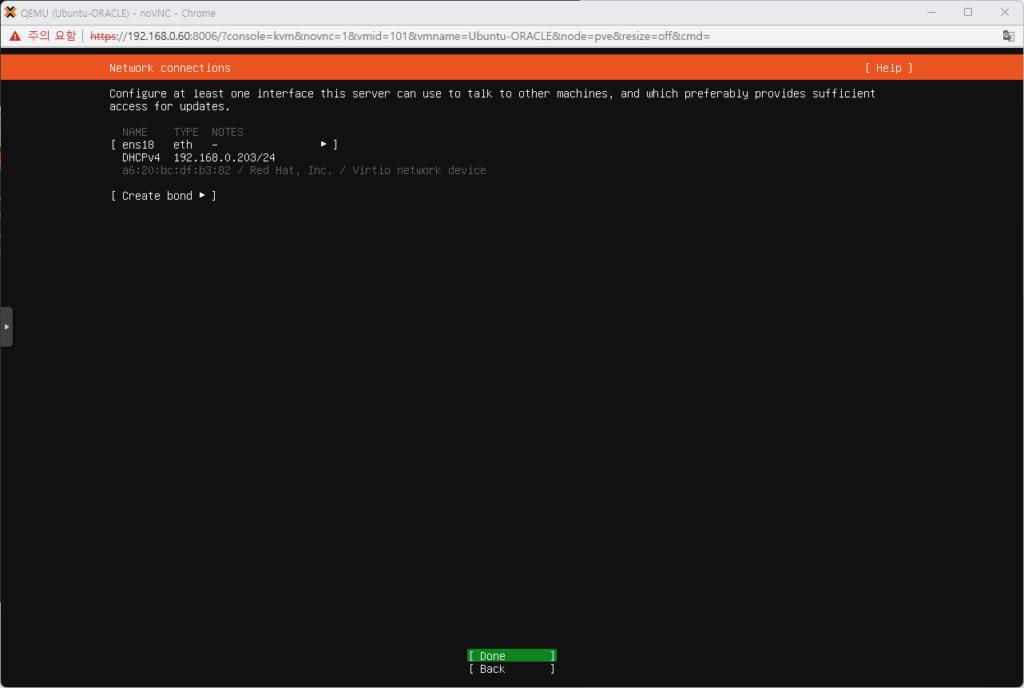 - 아래 네트워크 설정은 기본적인 DHCP 네트워크 환경이라면 아래처럼 IP가 자동으로 할당됩니다. 필요에 따라 IP 수동으로 잡아주시면 됩니다.