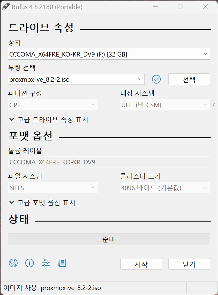 - 현재 설치하는 버전은 Proxmox 8.2 버전