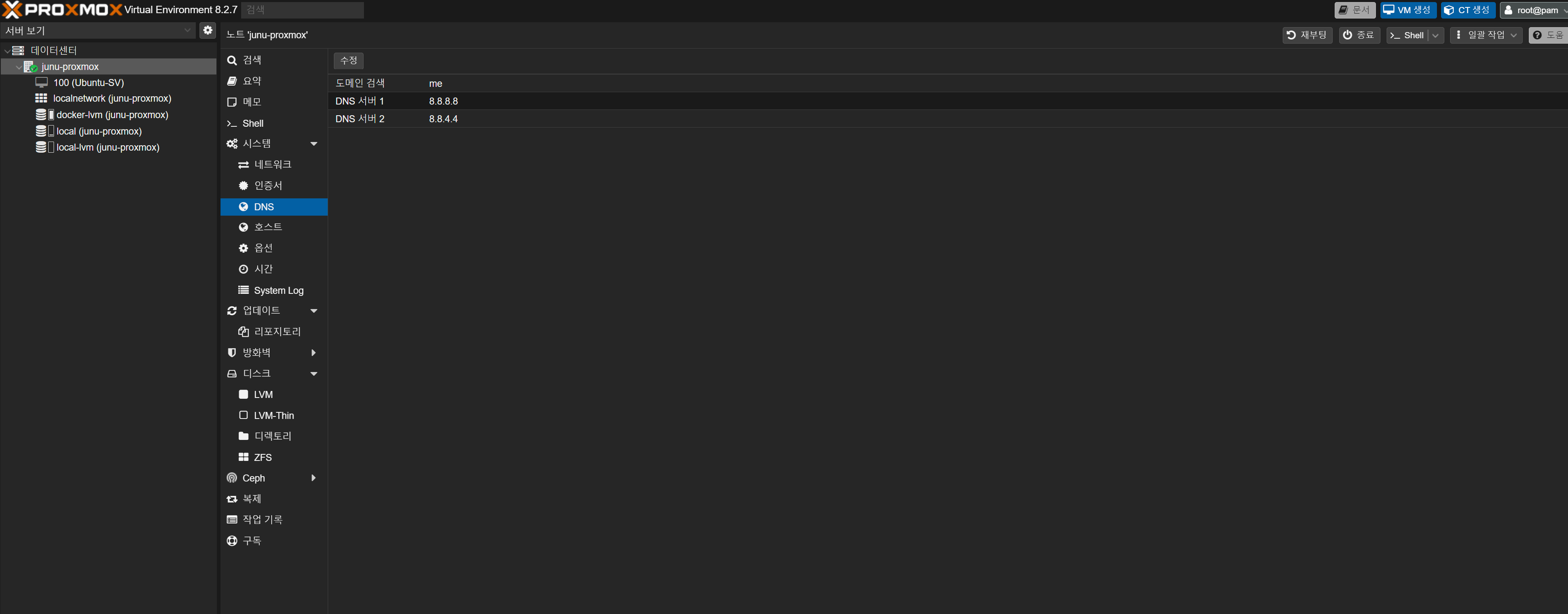 • vi 편집기 저장 후 Proxmox WebUI 확인