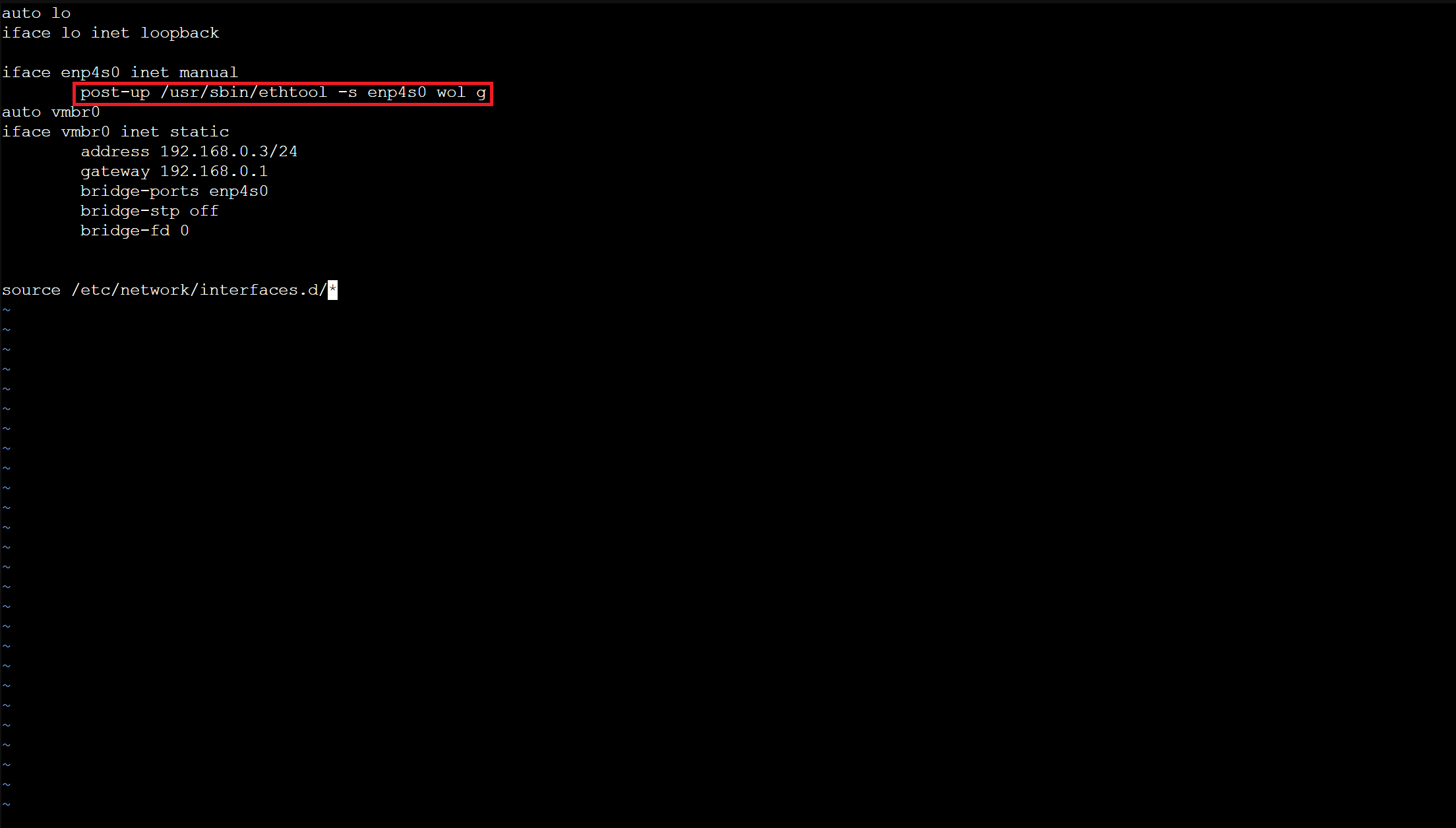 post-up /usr/sbin/ethtool -s [인터페이스이름] wol g