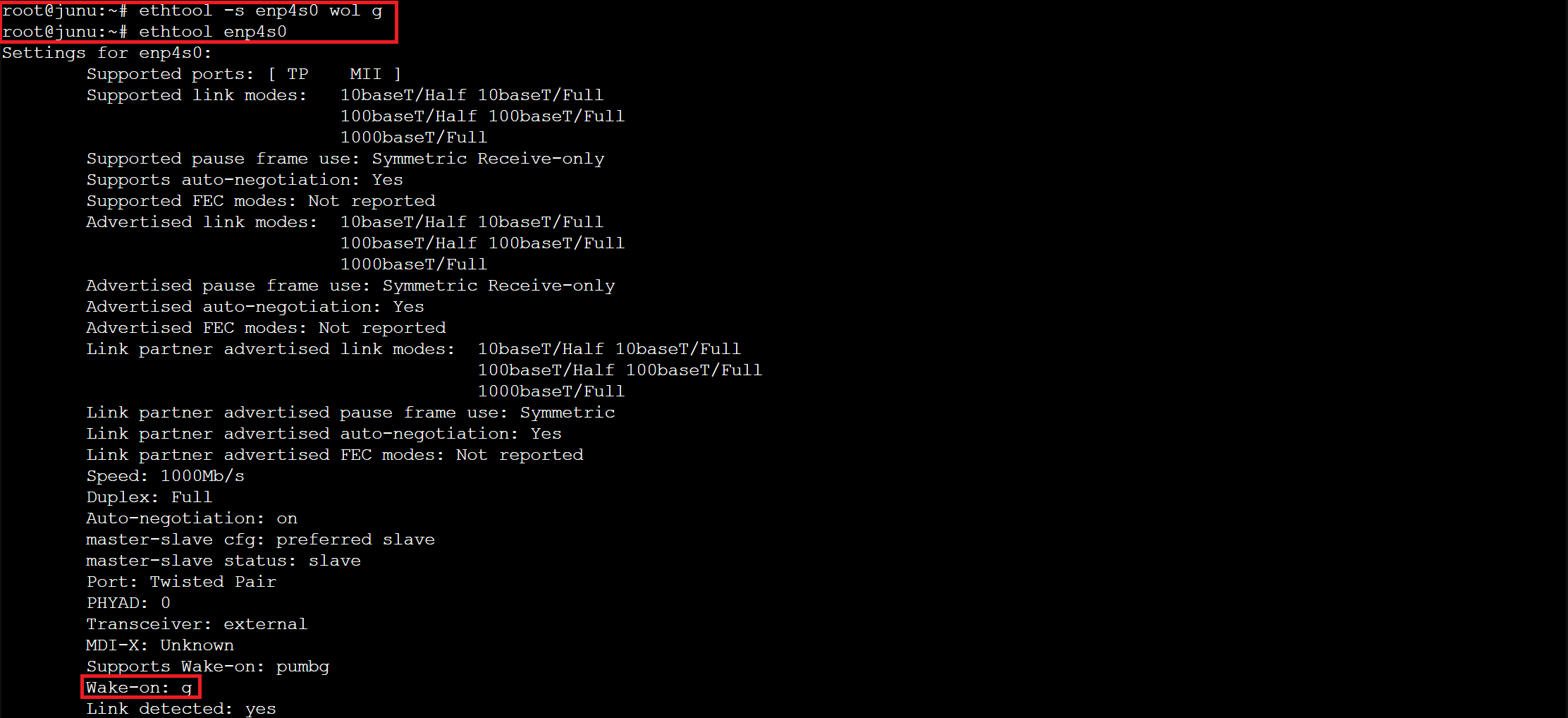 • 아래 명령어로 WOL 기능을 활성화 ( g:enable, d:disable)