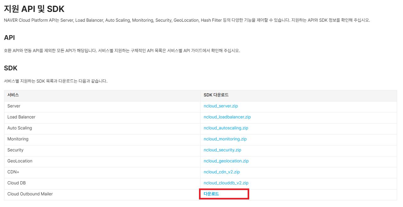 - Cloud Outbound Mailer 제공하는 SDK 다운로드 (공공기관용이 따로 있으니 확인 후 다운로드 바랍니다.)